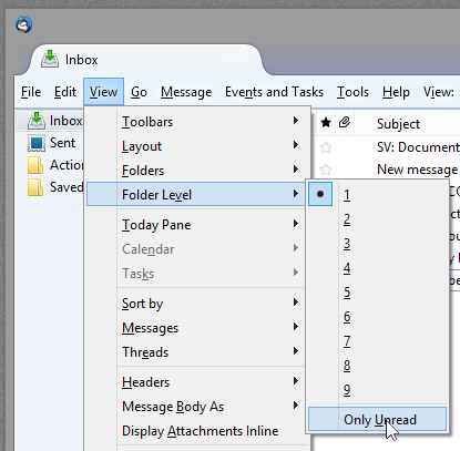 Folder Levels lets you get rid of the distractions and see only the mail that matters to you at the moment. You can decide exactly which folders are visible at any time, based on their relative importance to you and what you are currently trying to accomplish.